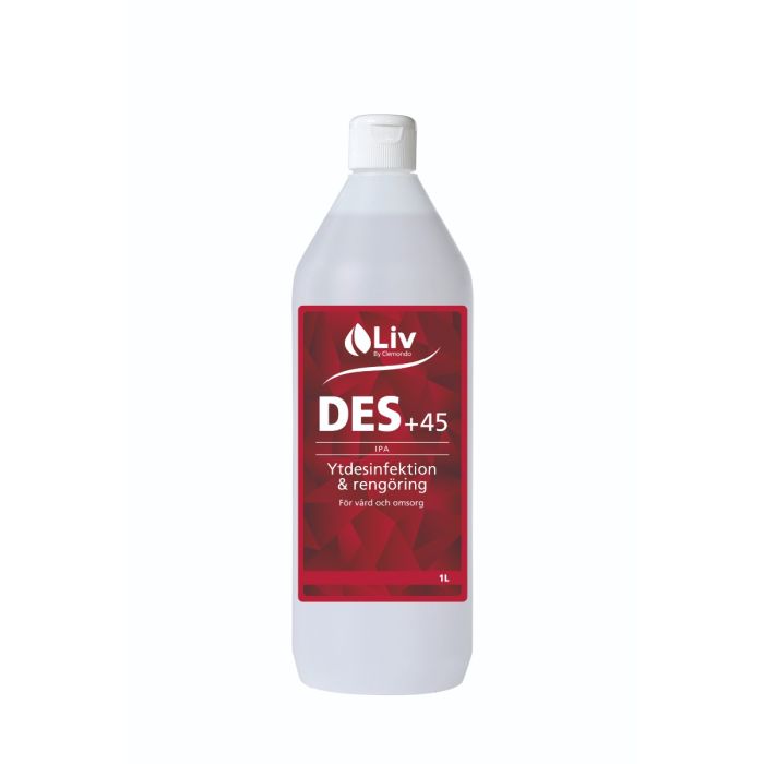 Ytdesinfektion som innehåller 45 vol% isopropylalkohol med en tillsats av tensid för att få en rengörande effekt. Produkten kan användas inom områden där mikrobiologisk smittspridning skall förebyggas och förhindras. Avsedd för ytor kontaminerade med kroppsvätskor, blod osv. Fri från Castor Oil. Produkten är godkänd för desinficering av Siemens Acuson ultraljudsgivare.