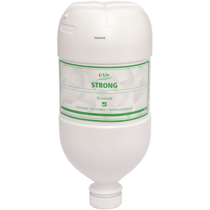 Strong är en grovtvål avsedd för handtvätt som effektivt rengör de smutsigaste händerna.