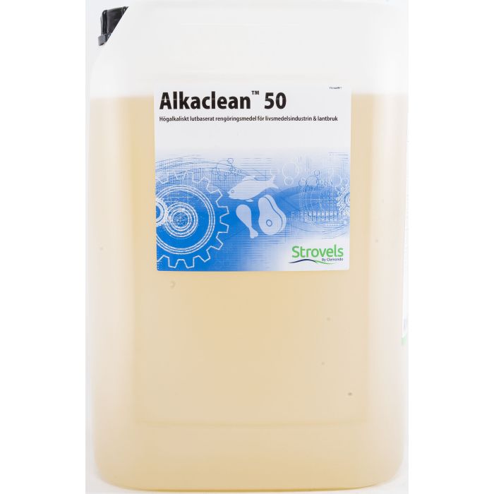Alkaclean 50 användes för borttagning av svår och fet smuts inom livsmedelssektorn, lantbruksnäringen och motsvarande områden. Innehåller både natron- och kalilut för bästa effekt.