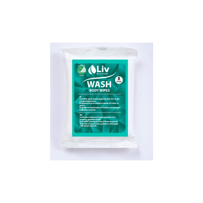Tvättservett (Bodywipe) är en oparfymerad hygienservett som rengör och återfuktar huden. Avsedda att användas till enbart en patient. Servetten kan både värmas och kylas om så önskas. Servetten är mjuk och behaglig med mild tvättvätska. Förpackningen innehåller 8 st servetter 220 x 200 mm. Duken är tillverkad av 100% viskos.