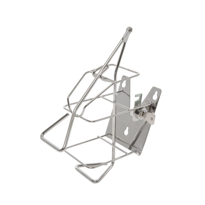 Låsbar rostfri väggdispenser med arm. Nyckel ingår. Avsedd för 600 ml flaska.