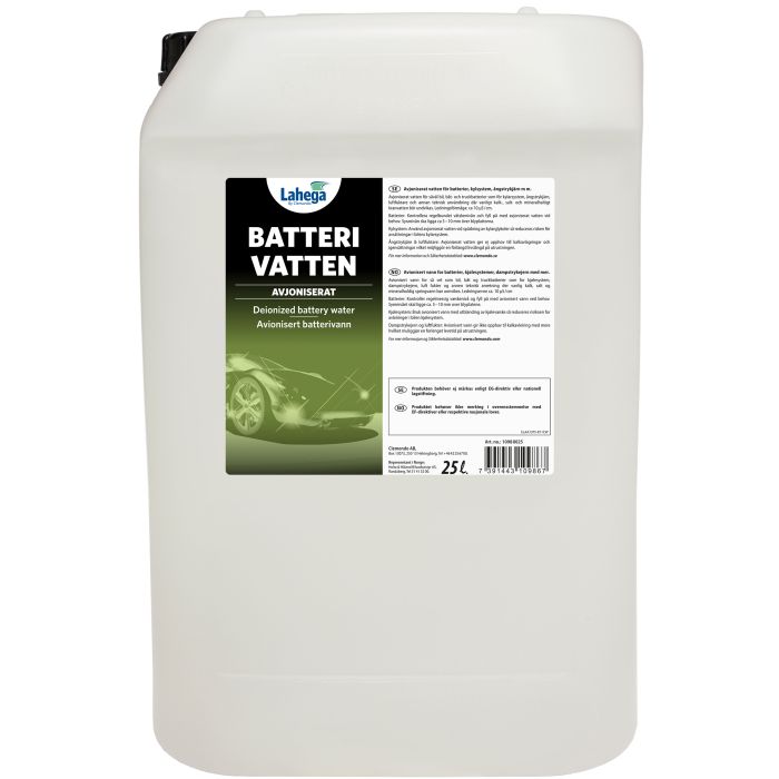 Avmineraliserat vatten. Användes till bil- båt- truckbatterier, kylarsystem, ångstrykjärn, luftfuktare och annan utrustning där vanligt kranvatten bör undvikas