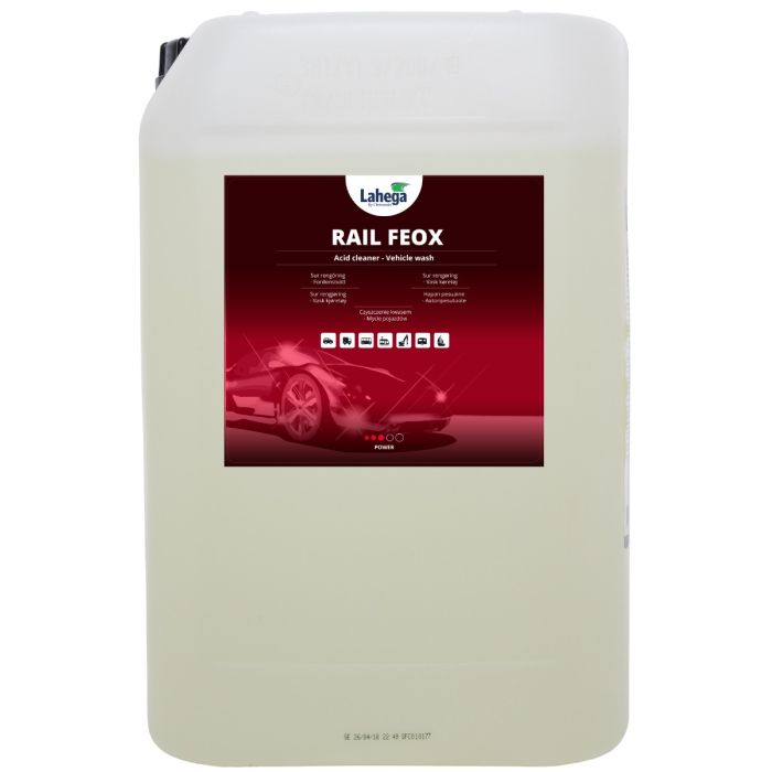 Späd 1 del Rail Feox med upp till 4 delar vatten. Tänk på att medlet ska hällas i vattnet, inte tvärtom.