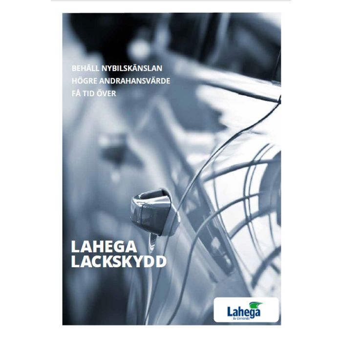 Införsäljningsbroschyren används som hjälp för att informera kunder om Lahegas olika lackskydd. I broschyren finns information som förklarar fördelarna med att lackskydda en bil som t.ex. bevarandet av nybilskänsla, högre andrahandsvärde och mer lättvättad.
