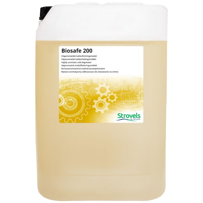 Biosafe är ett aromatiskt och snabbseparerande kallavfettningsmedel med svag petroleumdoft. Utmärkt för generell avfettning och avvaxning inom industrin. Produkten ersätter fotogen, kristallolja och produkter med klorerade kolväten. Produkten avlägsnar effektivt oljeföroreningar, tjära, asfalt o dyl. på motorer, fordon, maskinell utrustning mm. Kan appliceras på både våta och torra ytor eftersom den innehåller emulgator.