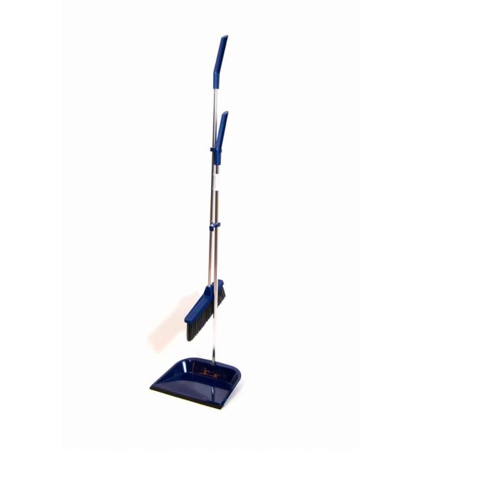 Proffer Sopset Blå Funktionell Stabil Lätt Sopset med sopborste och sopskyffel i plåt med gummilist.