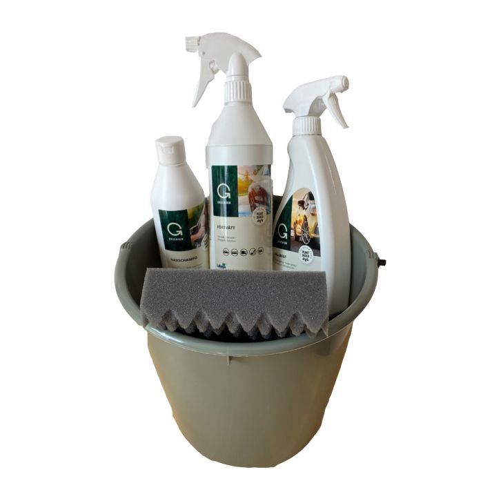 Hinken innehåller:HinkTvättsvamp våfflad 2stLahega Greenium Förtvätt 1LLahega Greenium Insektsbort, 750 mlLahega Greenium Vaxschampo 500ml