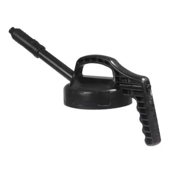 Oil Safe lock med utdragbar pip för snabb och säker påfyllning. Svart.