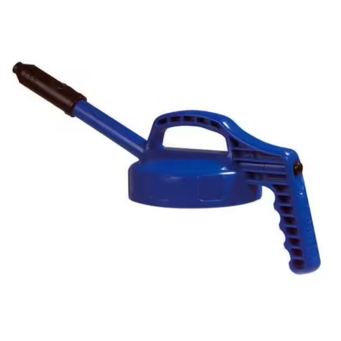 Oil Safe lock med utdragbar pip för snabb och säker påfyllning. Blå.