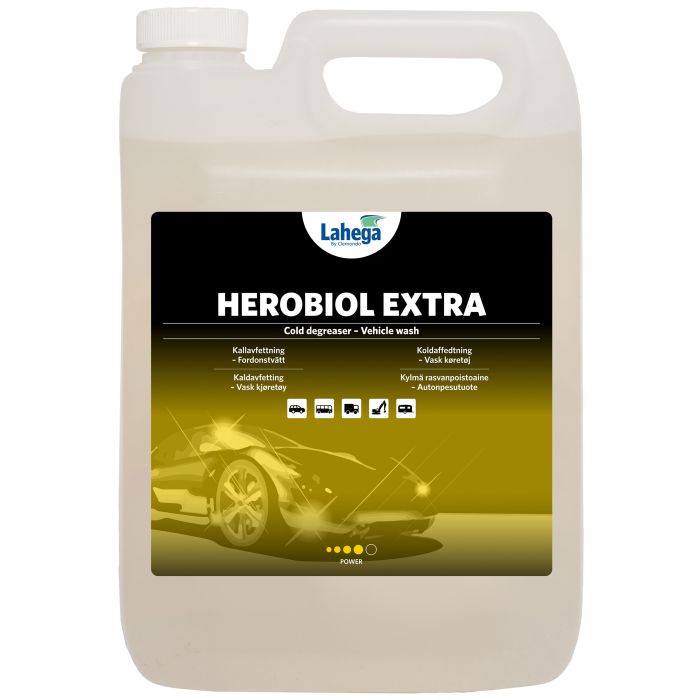 Herbiol Extra är ett kraftfullt petroleumbaserat kallavfettningsmedel för borttagning av svårlösliga oljeföroreningar, tjära, asfalt och liknande på fordon, motorer och maskinell utrustning. Det är utmärkt att använda under vinterhalvåret som förtvättmedel för biltvättsanläggningar då den även fungerar på fuktiga ytor.