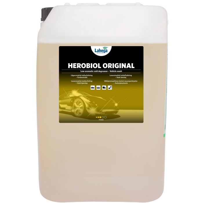 Herobiol original är ett lågaromatiskt kallavfettningsmedel med låg egenlukt för fordonstvätt. Det avlägsnar oljeföroreningar, tjära, asfalt och liknande föroreningar på motorer, fordon, maskinell utrustning m m. Herobiol Original innehåller emulgator och är avsedd för torra ytor.