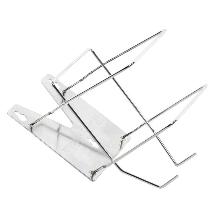 Hållare i rostfritt stål för fyrkantig 600-ml flaska. Utan "arm". Monteras med skruv på vägg. OBS! Skruvar ingår ej.