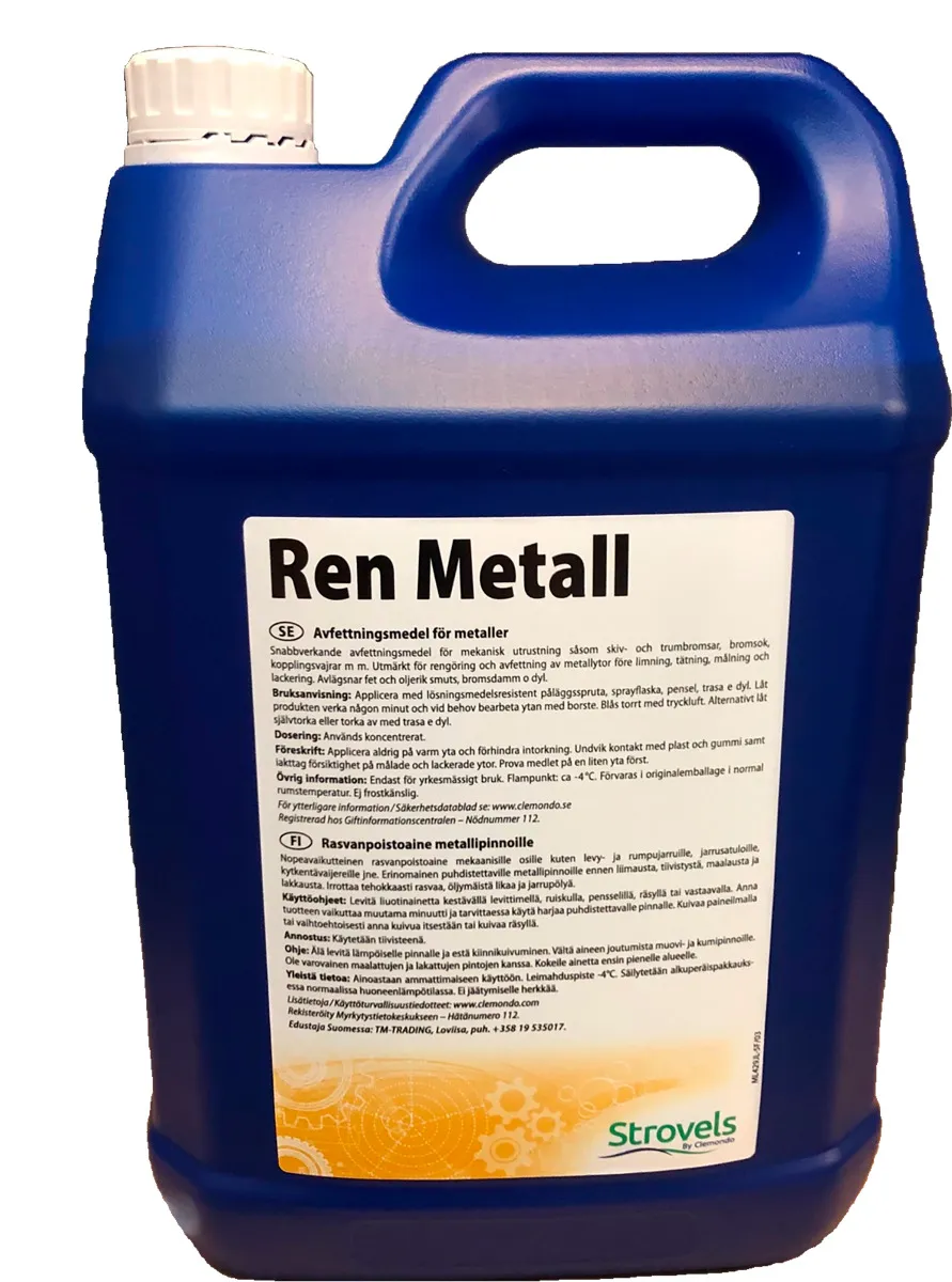 Ren Metall är ett snabbavdunstande rengöringsmedel för mekanisk utrustning såsom skiv- och trumbromsar, bromsok, kopplingsvajrar m m.