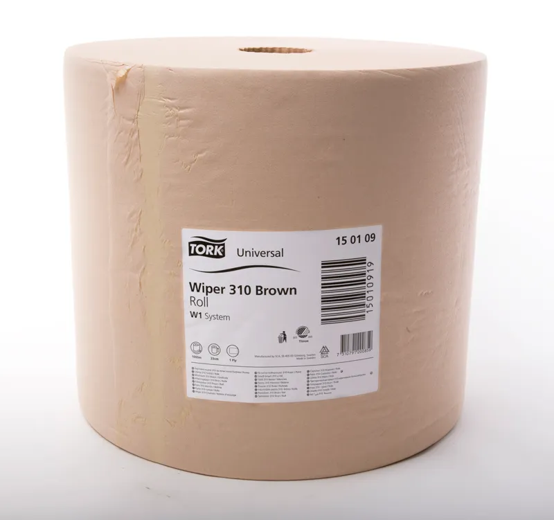 1-lags torkpapper för enklare avtorkning. Tar bort olja, fett, vatten och smuts. Passar för områden med stor förbrukning. Brun.