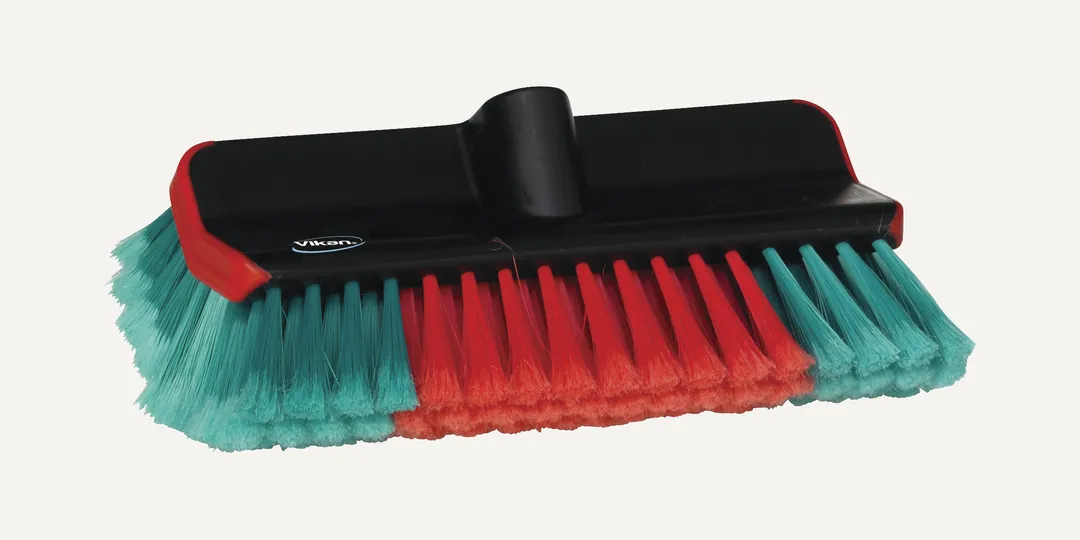 Vikan Vinklad borste som säkrar en effektiv rengöring där filamenten kommer i konstant kontakt med ytan. Gummikant för optimal skonsamhet.