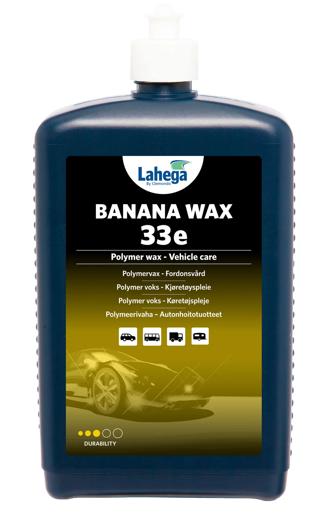 Banana Wax 33e är ett extremt lättarbetad polymervax för alla typer av billacker. Ger enastående lyster och glans med upp till 6 månaders skyddstid. Formula som gör det lätt att torka av vaxrester från plast- och gummidetaljer.