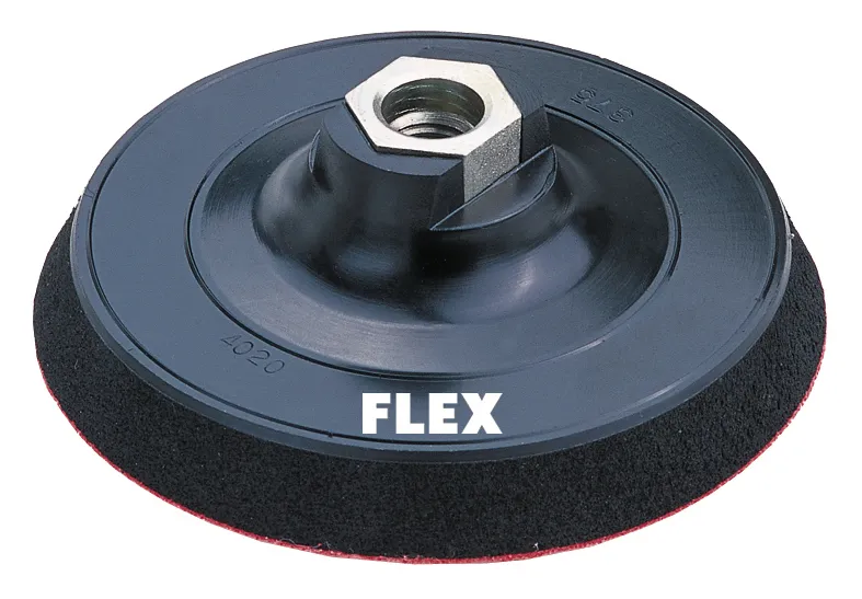Rondellplatta med dämpande skikt och kardborrfäste till roterande polermaskiner. Passar till maskiner med verktygsaxel M14. Ej till Flex XC maskiner. Standard till Polermaskin 14-2 150.