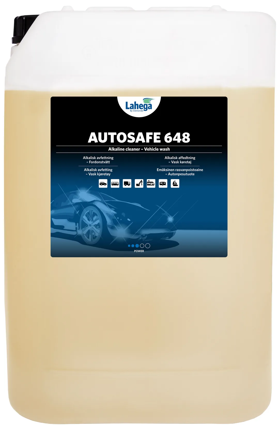 Autosafe 648 är ett kraftfullt medelskummande alkaliskt avfettningsmedel för fordonstvätt och industriell rengöring. . Avlägsnar snabbt fet smuts, trafikfilm och annan vägsmuts. Produkten har låg metallpåverkan.