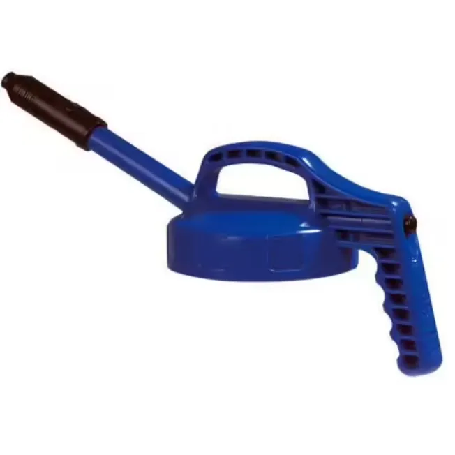 Oil Safe lock med utdragbar pip för snabb och säker påfyllning. Blå.