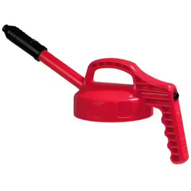 Oil Safe lock med utdragbar pip för snabb och säker påfyllning. Röd.