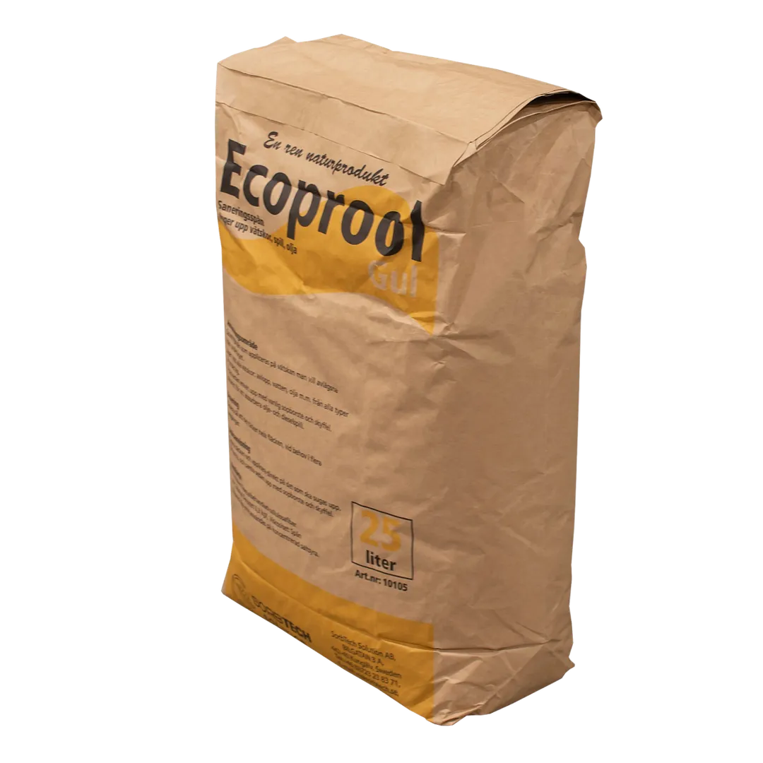 Absorbtionsmedel med mycket hög absorptionsförmåga. Absorberar vattenbaserade vätskor, oljor etc. Används på underlag som asfalt, sten och betong etc. Vid absorption av vissa syror kan det finnas begränsningar.